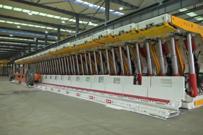 “大家一定要充分發(fā)揮利用好現(xiàn)有資源和團(tuán)隊(duì)優(yōu)勢(shì),在解決‘卡脖子’技術(shù)難題方面取得更多更大突破。”中盤重工公司領(lǐng)導(dǎo)班子到基層調(diào)查研究時(shí)直面問題所在。中盤重工公司始終秉承“讓復(fù)雜地質(zhì)的煤礦更安全更高效開采”的企業(yè)使命,在大傾角、急傾斜液壓支架和刮板輸送機(jī)核心技術(shù)研發(fā)方面持續(xù)發(fā)力,研制的ZY6800/21/45J型急傾斜液壓支架,中心距1.75米,最大采高4.2米,是急傾斜中厚煤層機(jī)械化開采技術(shù)的新突破,2023年12月5日實(shí)施了三機(jī)聯(lián)調(diào)聯(lián)試,獲得礦方高度認(rèn)可。液壓支架突破了在最大傾角52度、最大采高4.2米的高效防倒防滑和安全防護(hù),技術(shù)達(dá)到國(guó)內(nèi)先進(jìn)水平。與該支架配套的SGZ800系列刮板輸送機(jī),是公司首臺(tái)套800系列刮板輸送機(jī),應(yīng)用于急傾斜采面尚屬首例,輸送機(jī)采用無鏈、無驅(qū)動(dòng)結(jié)構(gòu)形式,應(yīng)用傾斜工作面的自然條件,實(shí)現(xiàn)煤的自溜運(yùn)輸。